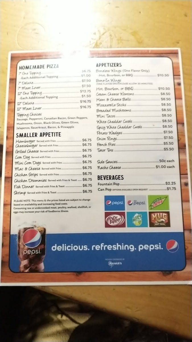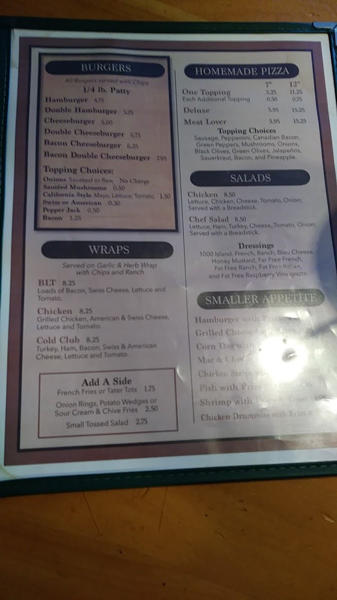 You’ll find classic bar and grill fare like hearty burgers, including the popular Onion, Mushroom & Swiss Burger, alongside crisp French fries and crispy appetizers such as buffalo wings and creamy cheese curds. Homemade pizza and mini tacos add a bit of variety, while comforting grilled cheese sandwiches make for a simple, familiar choice.