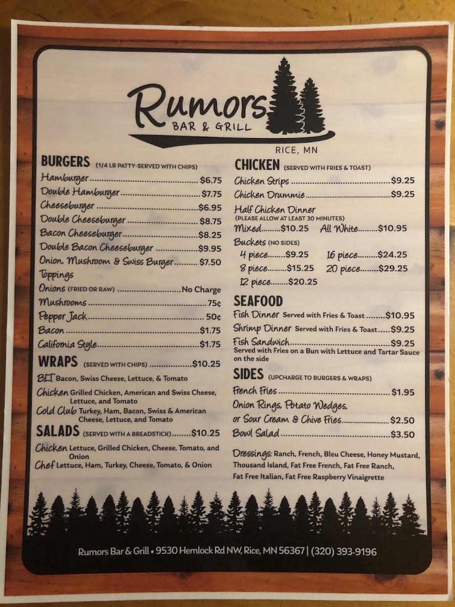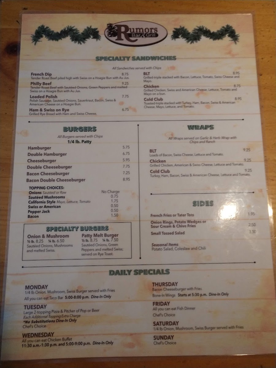 The menu at Rumors Bar & Grill offers a straightforward, no-fuss selection that suits a casual and welcoming atmosphere. It’s the kind of place where comfortable, satisfying food pairs well with relaxed gatherings—whether you’re stopping by after a long day or meeting friends for a low-key evening.
