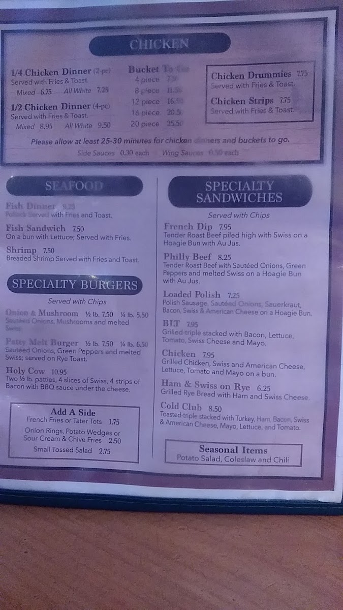 This menu supports the easygoing vibe of the bar, encouraging patrons to slow down, share good food, and enjoy moments that are unpretentious and familiar. Whether grabbing a bite solo on the road or settling in with friends, the food and drinks here reflect a straightforward approach to good bar and grill classics.